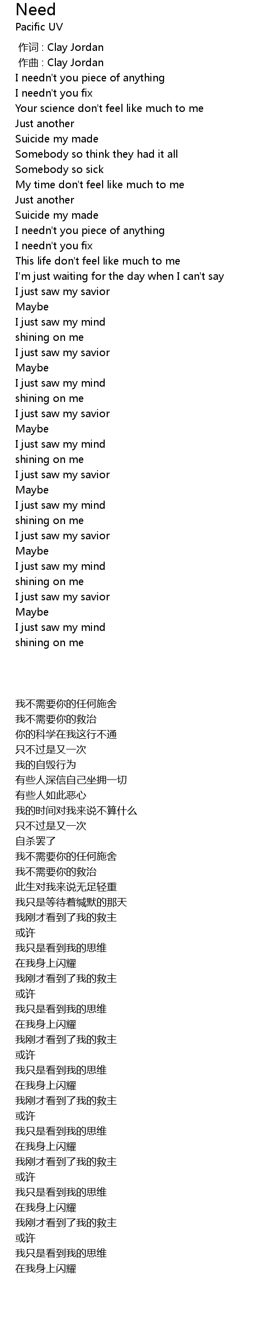| [00:41.41] | I needn't you piece of anything |