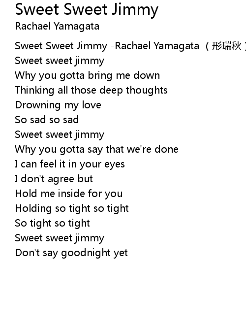| [00:00.00] | Sweet Sweet Jimmy Rachael Yamagata xíng ruì qiū |
