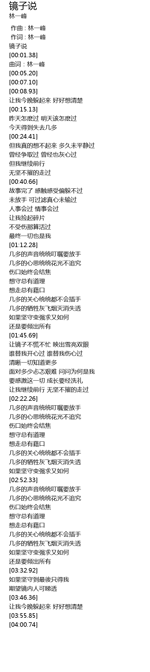 | [00:00.00] | zuò qǔ : lín yī fēng |