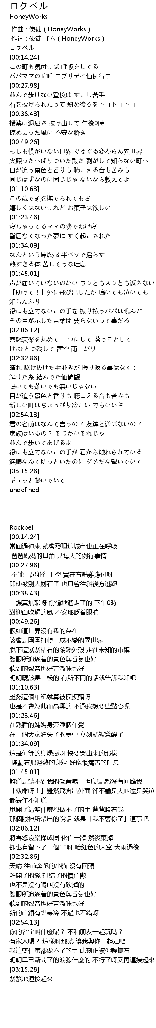 | [00:01.00] | 作词 : 使徒·ゴム(HoneyWorks) |