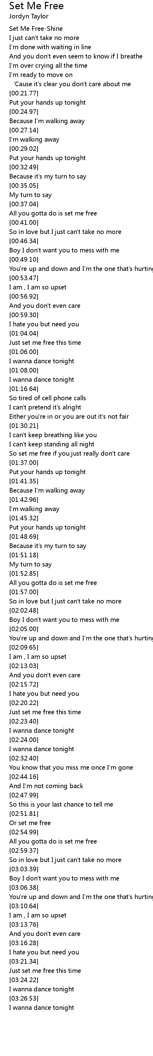 | [00:00.69] | Set Me FreeShine |