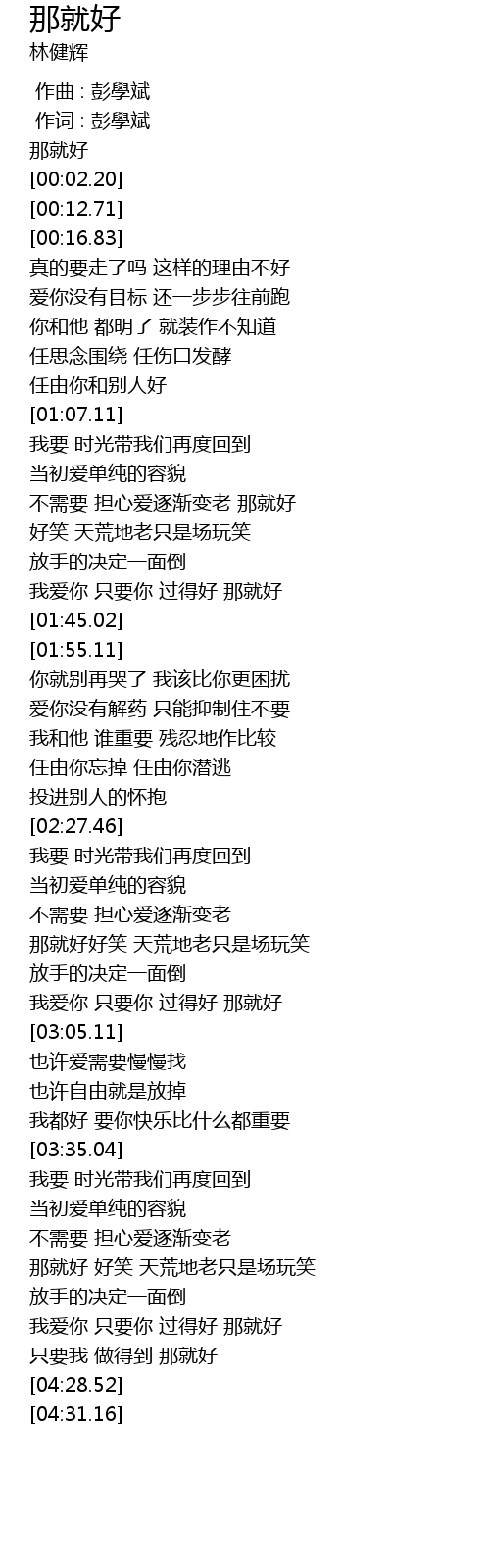 | [02:54.05] | 我爱你 只要你 过得好 那就好 |