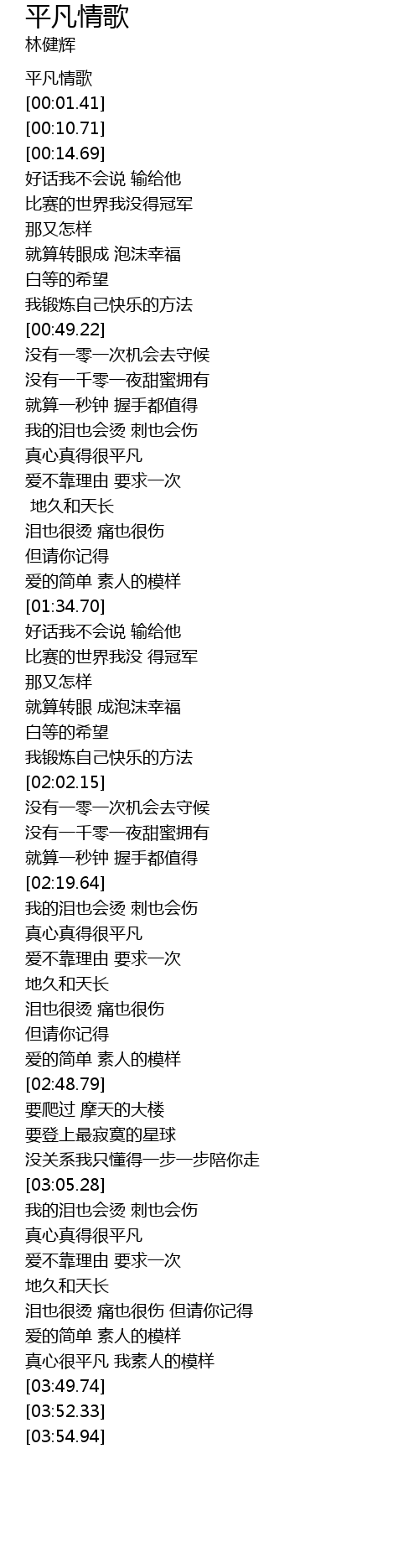 | [03:37.21] | zhēn xīn hěn píng fán wǒ sù rén de mú yàng |