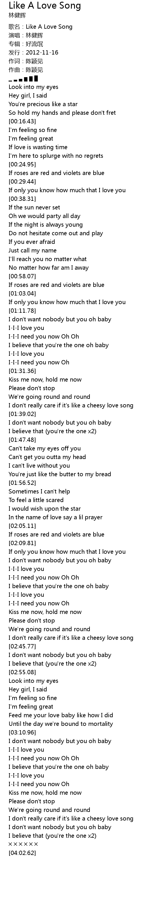 | [00:00.00] | gē míng: Like A Love Song |