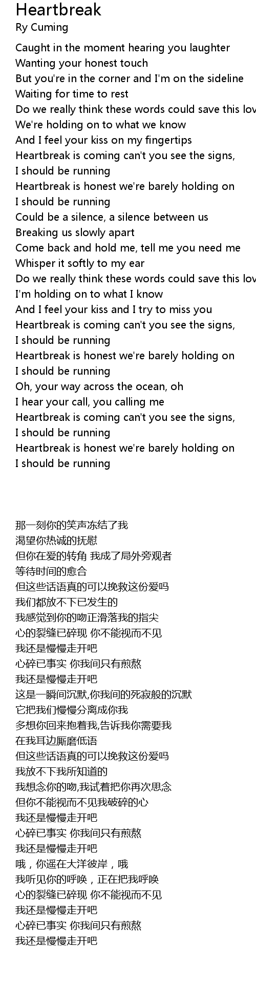 | [02:31.269] | Heartbreak is honest we're barely holding on |