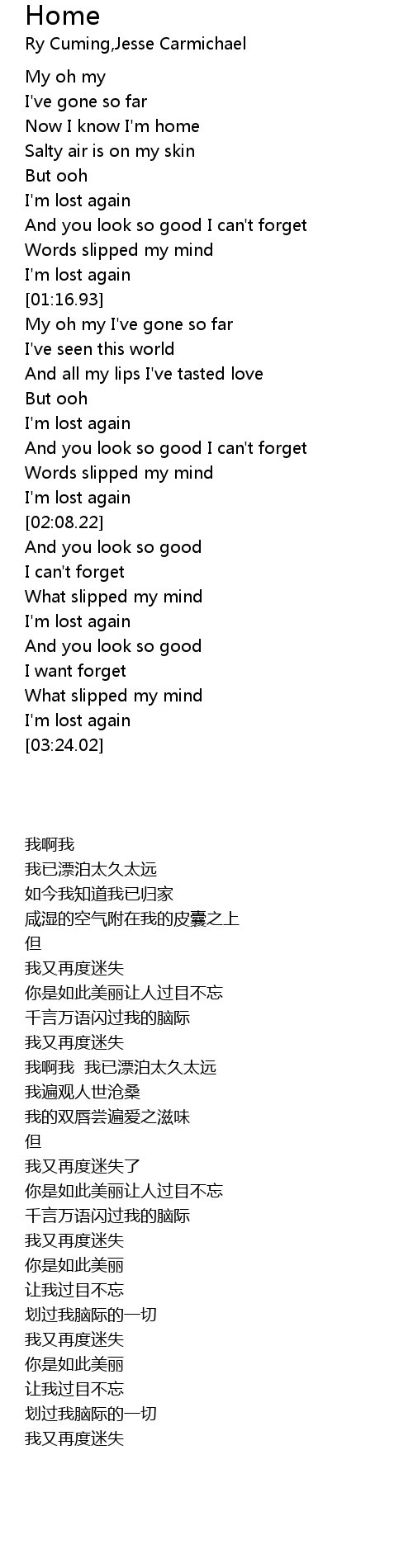 | [00:36.34] | Now I know I'm home |