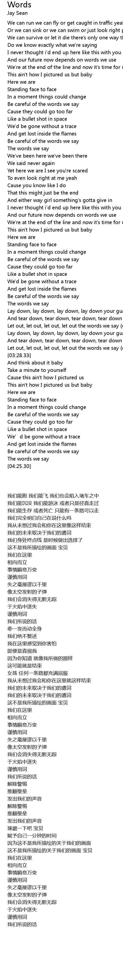 | [02:58.85] | Let out, let out, let out, let out the words we say (ohh) |