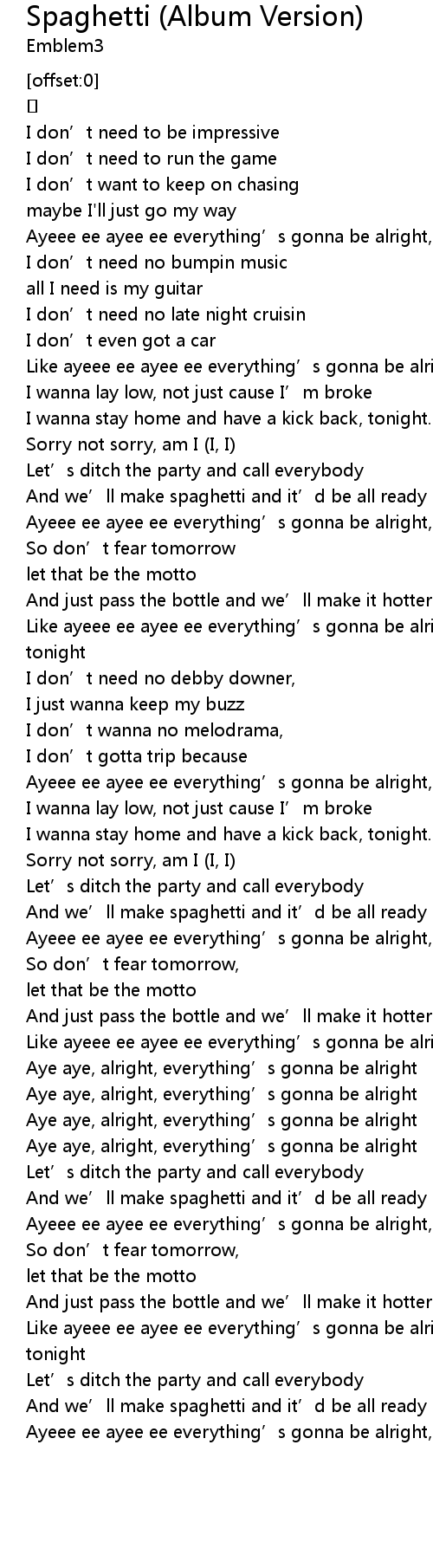 | [00:50.944] | Ayeee ee ayee ee everything’s gonna be alright, alright |