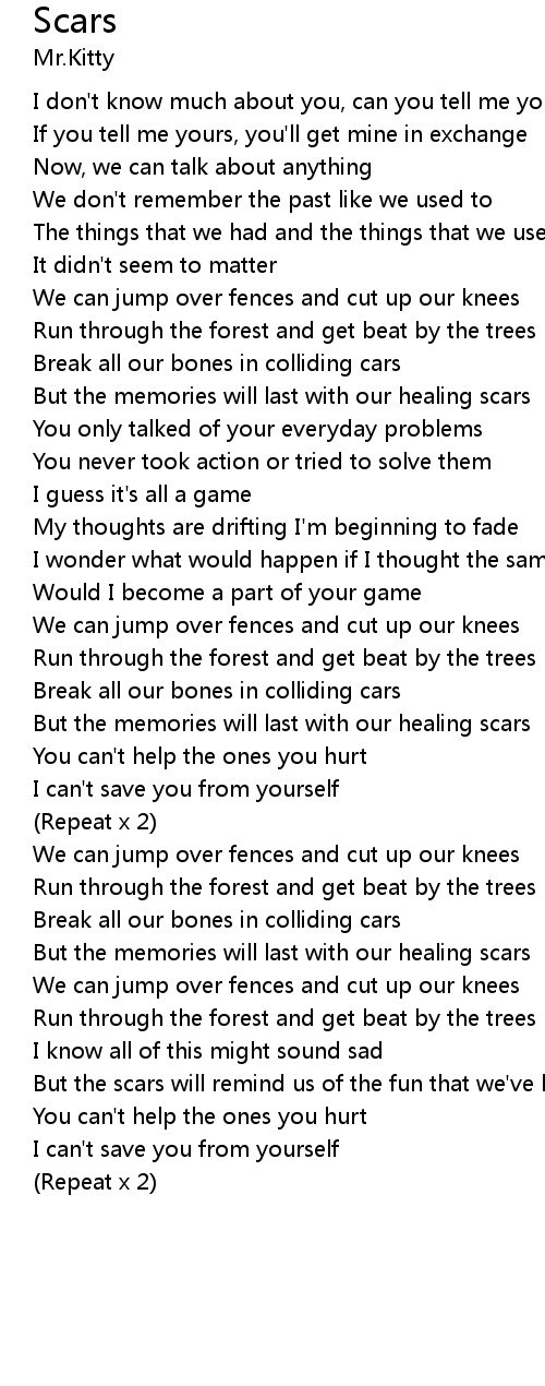 | But the scars will remind us of the fun that we've had | |