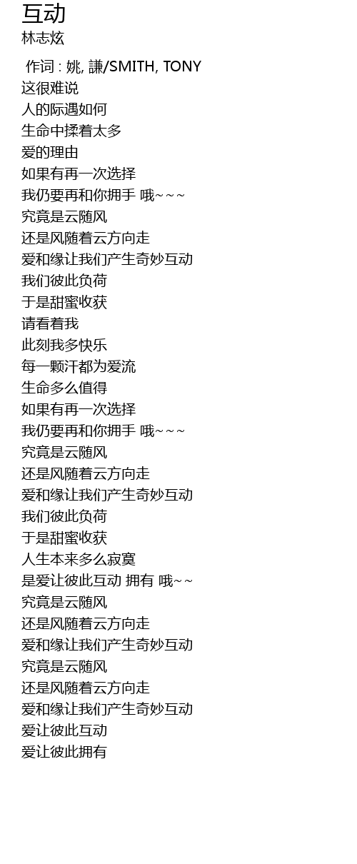 | [00:00.00] | 作词 : 姚, 謙/SMITH, TONY |
