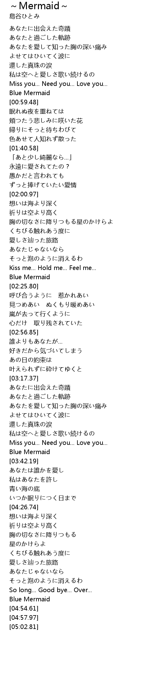 | [04:53.07] | Blue Mermaid |