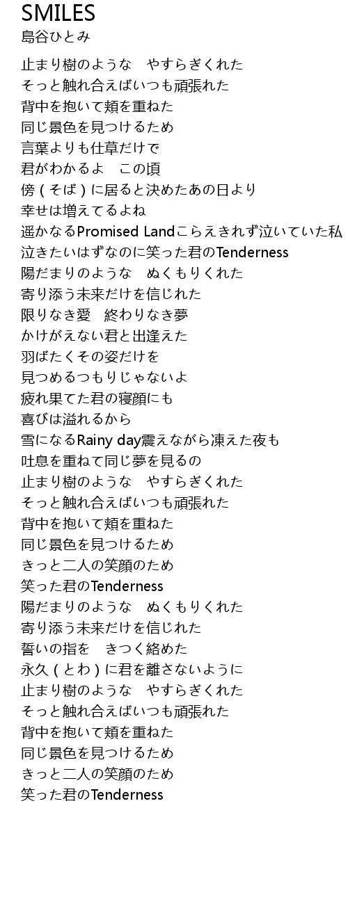 | [00:55.32] | 泣きたいはずなのに笑った君のTenderness |