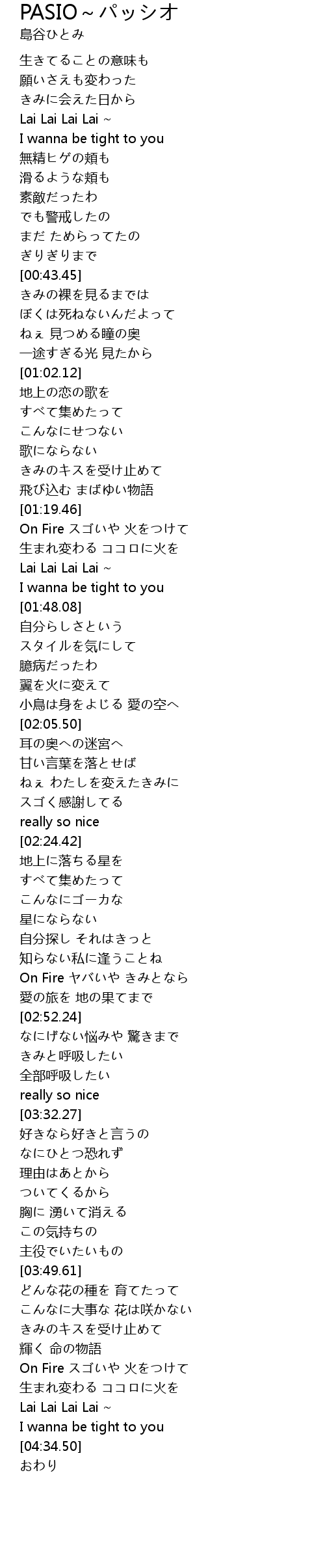 | [02:41.72] | On Fire ヤバいや きみとなら |