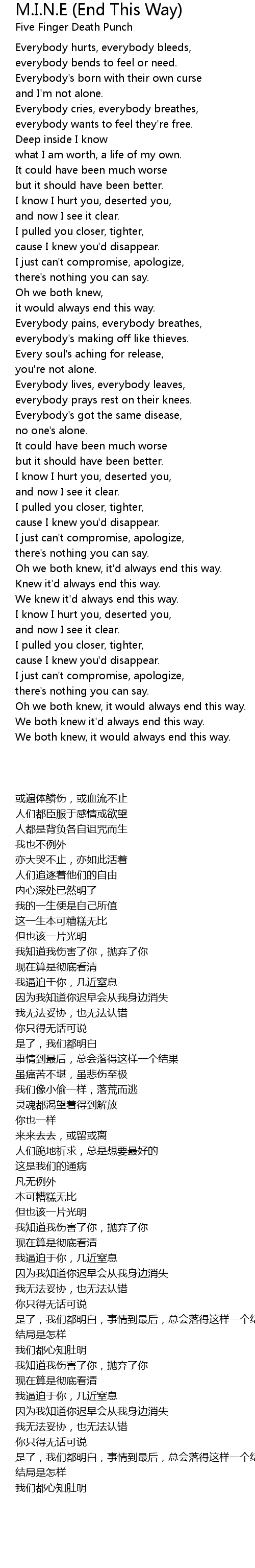 Everybody hurts, everybody bleeds, |