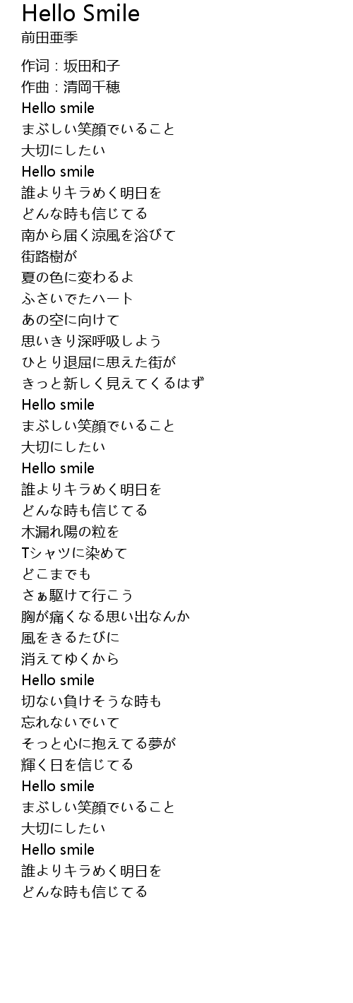 | [00:09.70] | Hello smile |