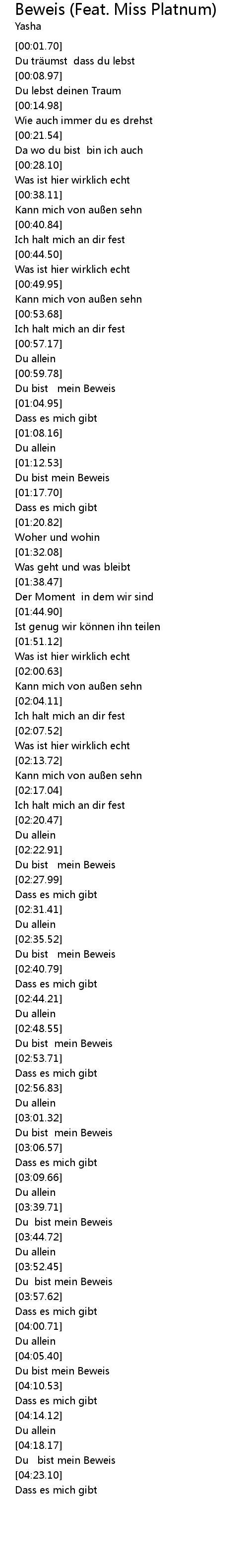 | [03:41.71] | Du bist mein Beweis |