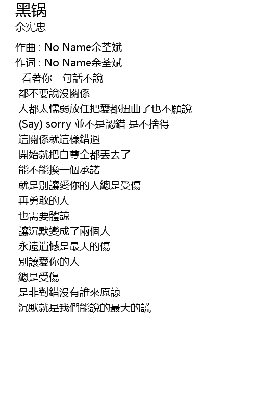 | 作词 : No Name余荃斌 | |