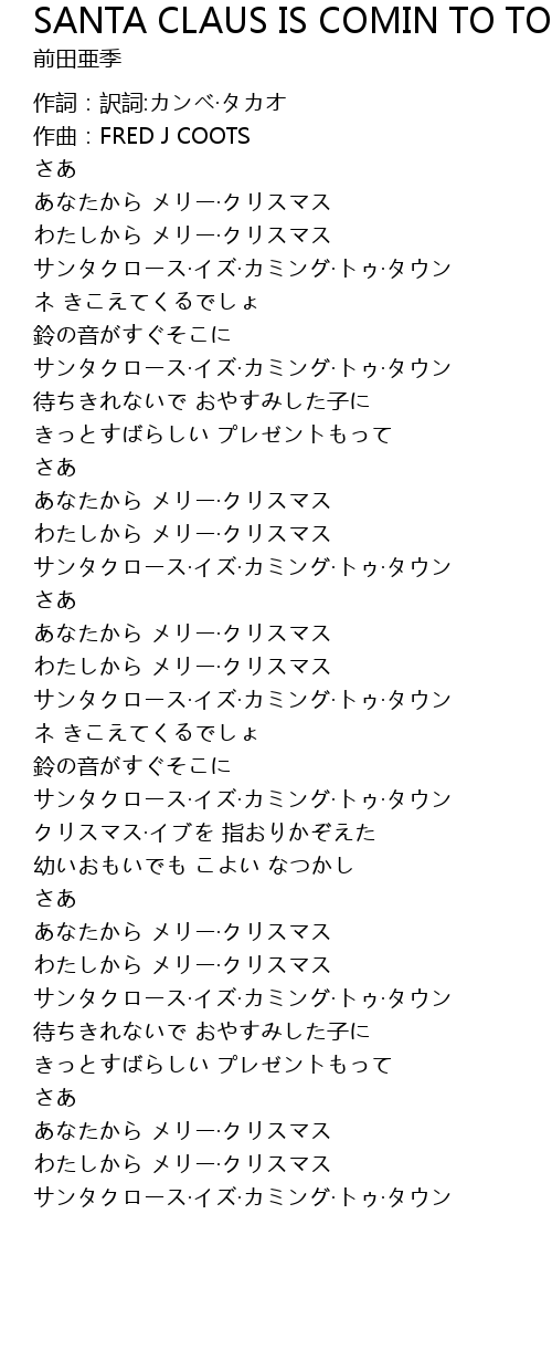 | [03:35.90] | サンタクロース·イズ·カミング·トゥ·タウン |