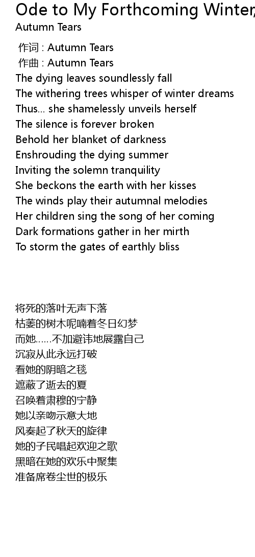 | Song | Ode to My Forthcoming Winter, Pt. 3 Autumn |