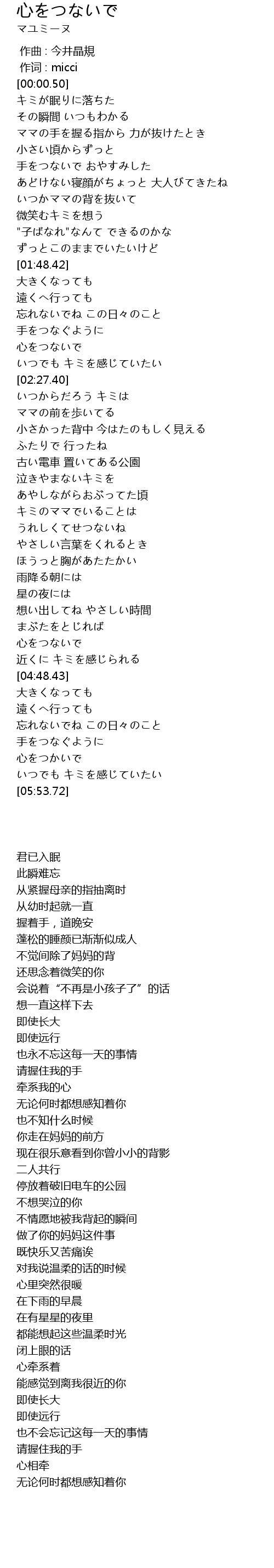 | [00:52.61] | 手をつないで おやすみした |