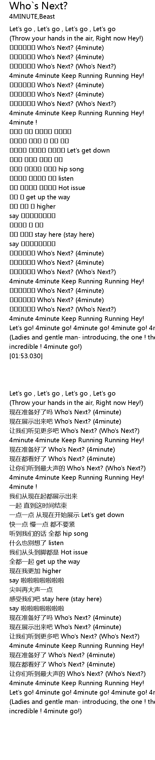 | [01:29.940] | Who' s Next? 4minute |
