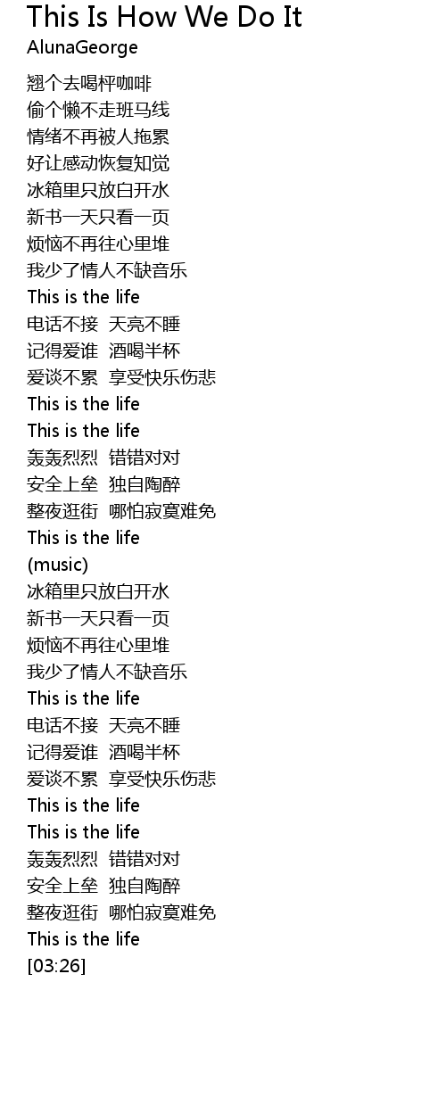 | Song | This Is How We Do It |