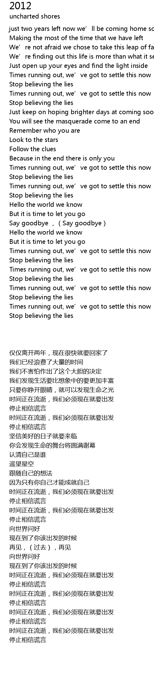 | [00:32.873] | just two years left now we' ll be coming home soon |