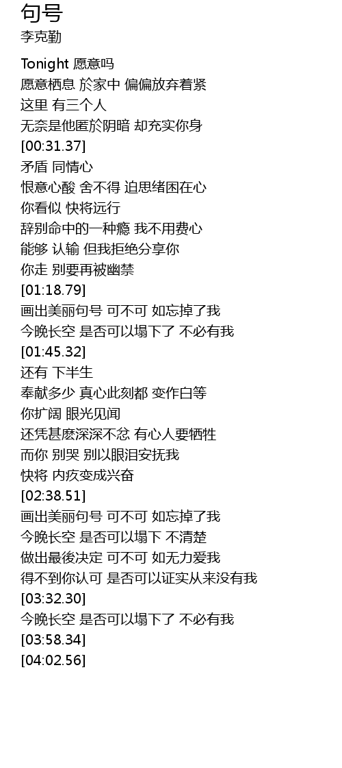 | [02:38.84] | 画出美丽句号 可不可 如忘掉了我 |