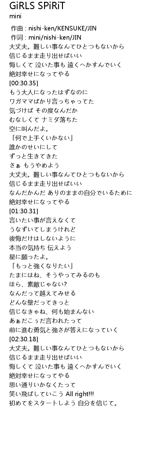 | [00:01.00] | 作词 : mini/nishi-ken/JIN |