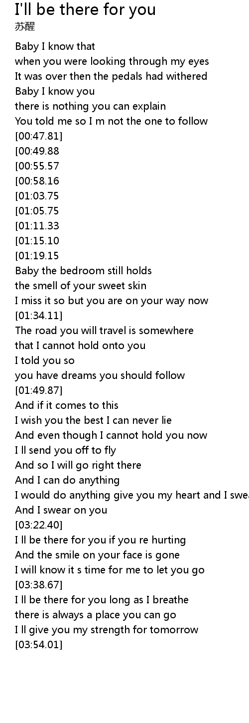 | [02:23.59][00:49.88] | I ll be there for you if you re hurting |