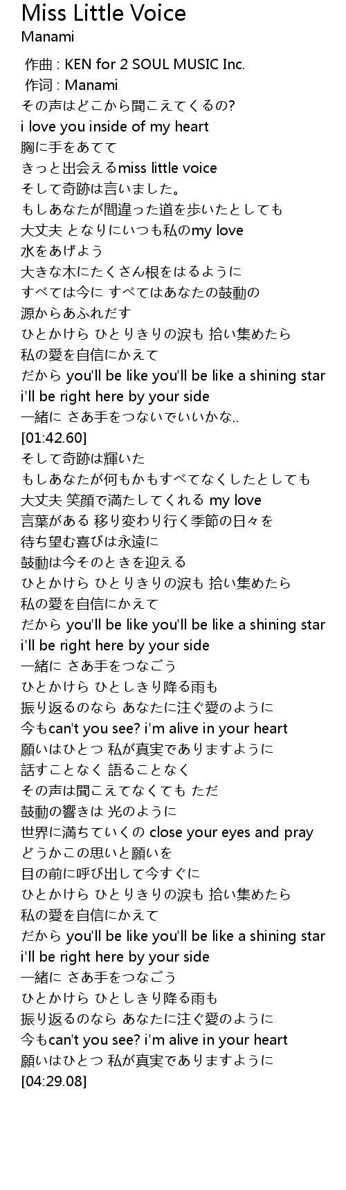 | [02:39.14] | だから you'll be like you'll be like a shining star |