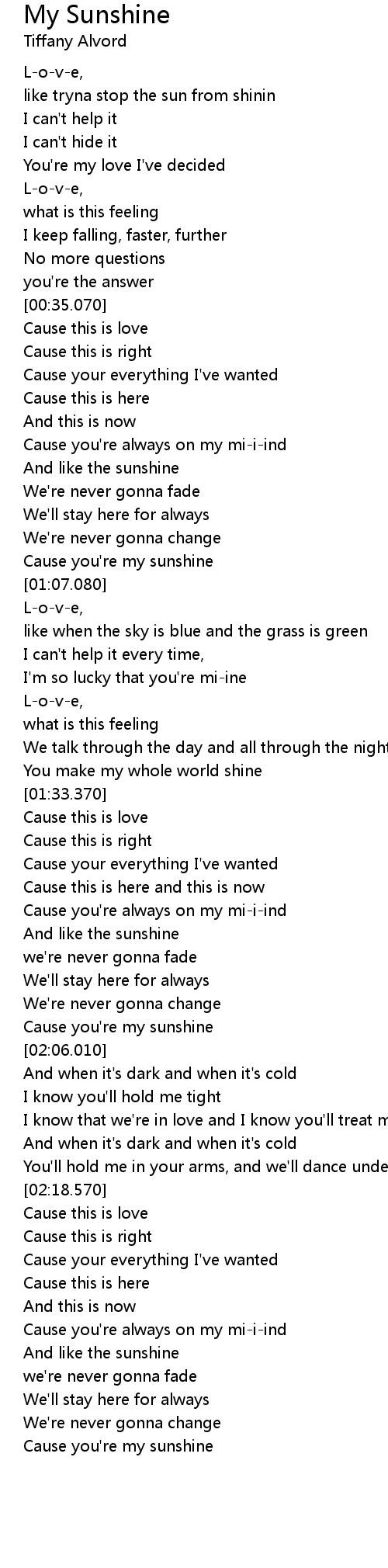 Cause you're my sunshine |