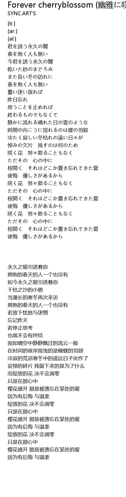 | [03:47.21] | 桜開く それはどこか置き忘れてきた愛 |