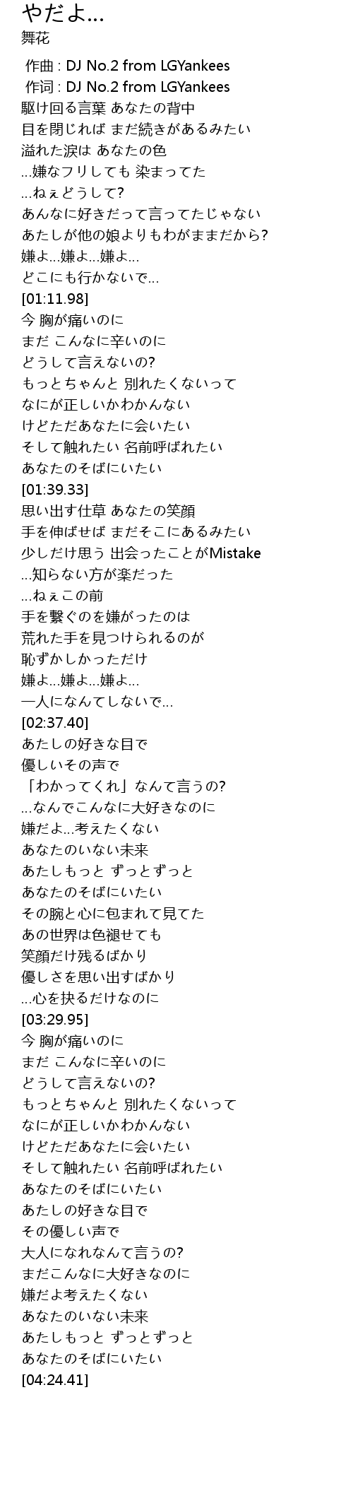 | [04:09.61] | 嫌だよ考えたくない |