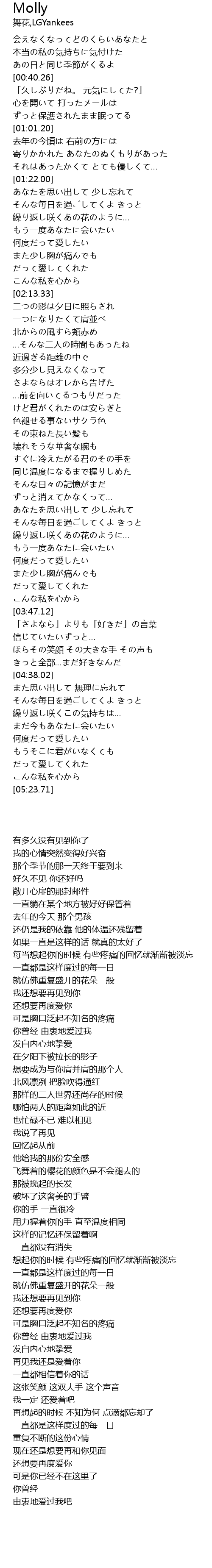 | [04:25.87] | きっと全部…まだ好きなんだ |