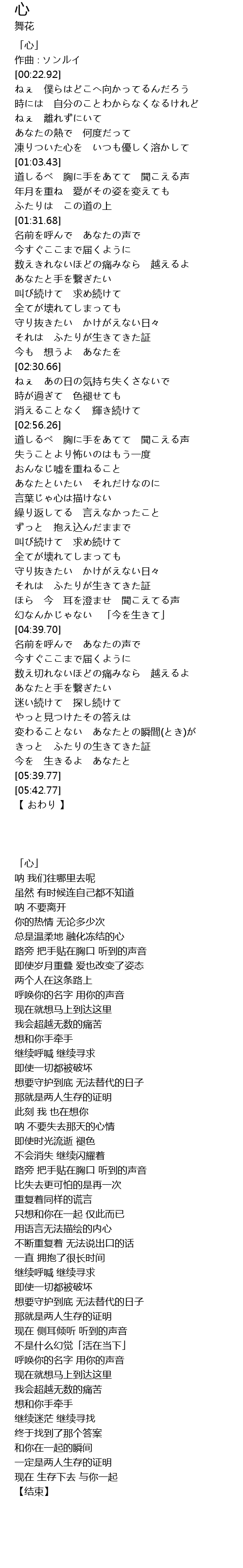 | [05:24.81] | きっと ふたりの生きてきた証 |