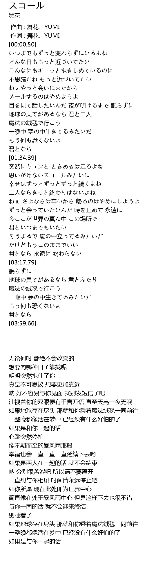 | [00:00.00] | 作曲 : 舞花、YUMI |