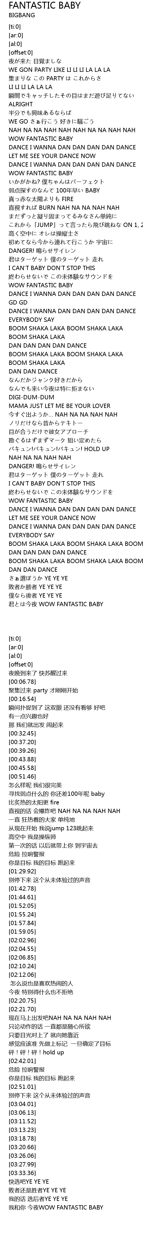 | [01:42.78] | WOW FANTASTIC BABY |