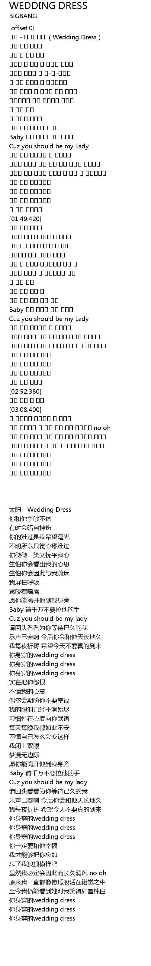 | [00:02.0] | 태양 - 웨딩드레스 (Wedding Dress) |