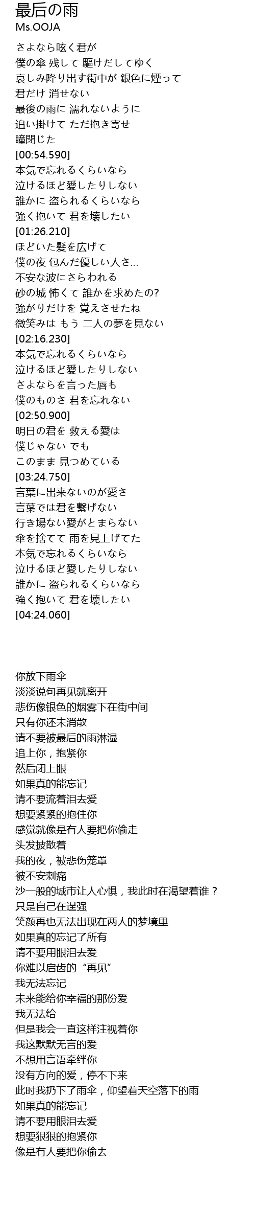 | [00:20.350] | 僕の傘 残して 驅けだしてゆく |