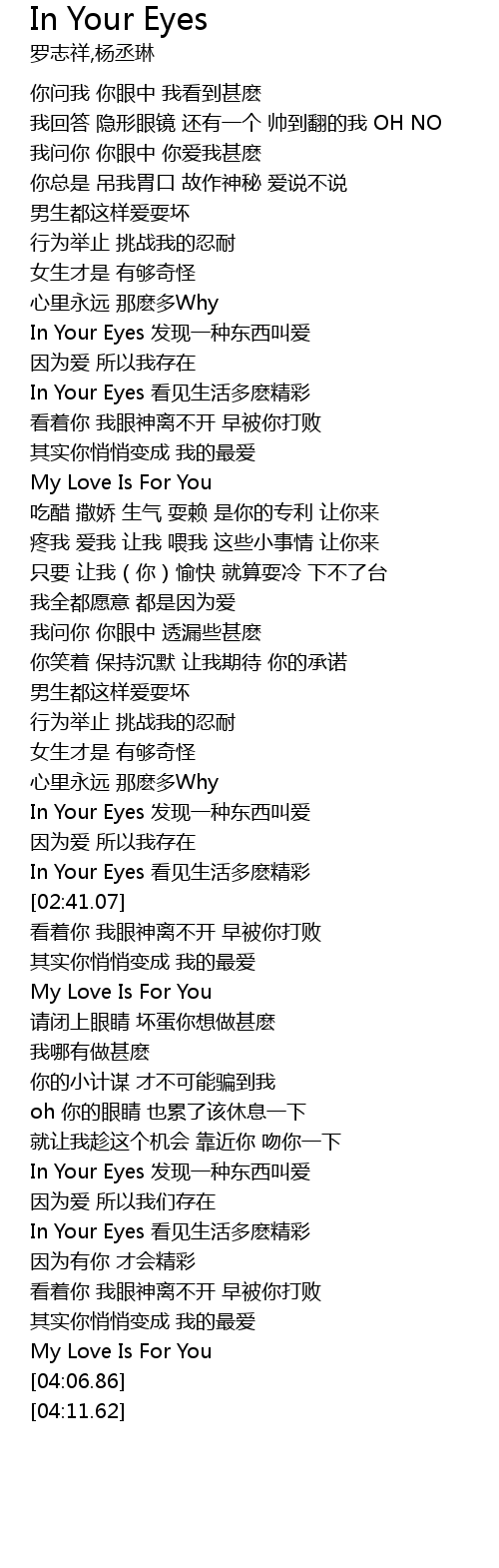 | [02:27.83] | In Your Eyes 发现一种东西叫爱 |