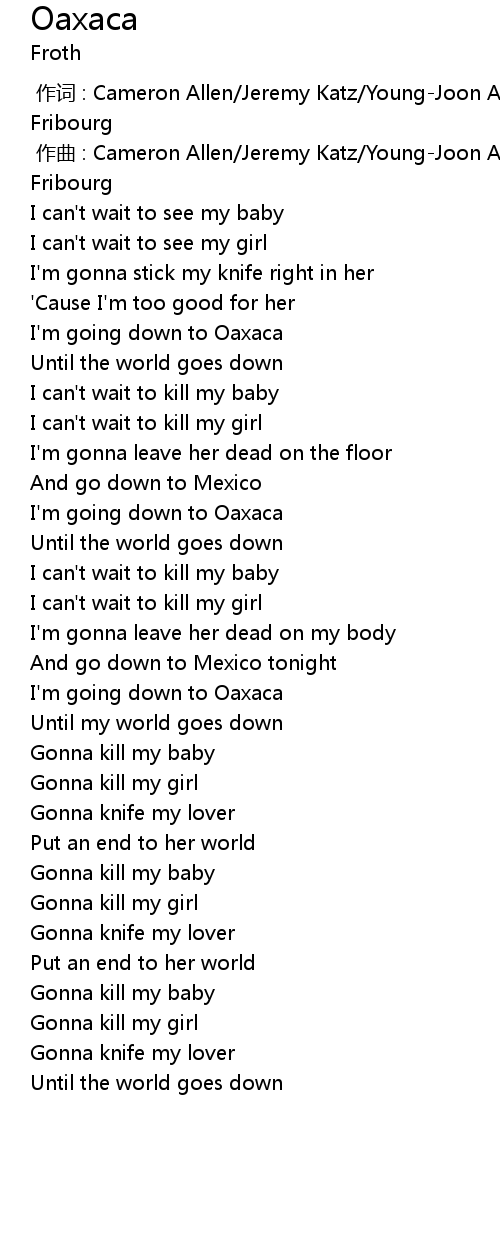 | [01:34.44] | I can't wait to kill my girl |