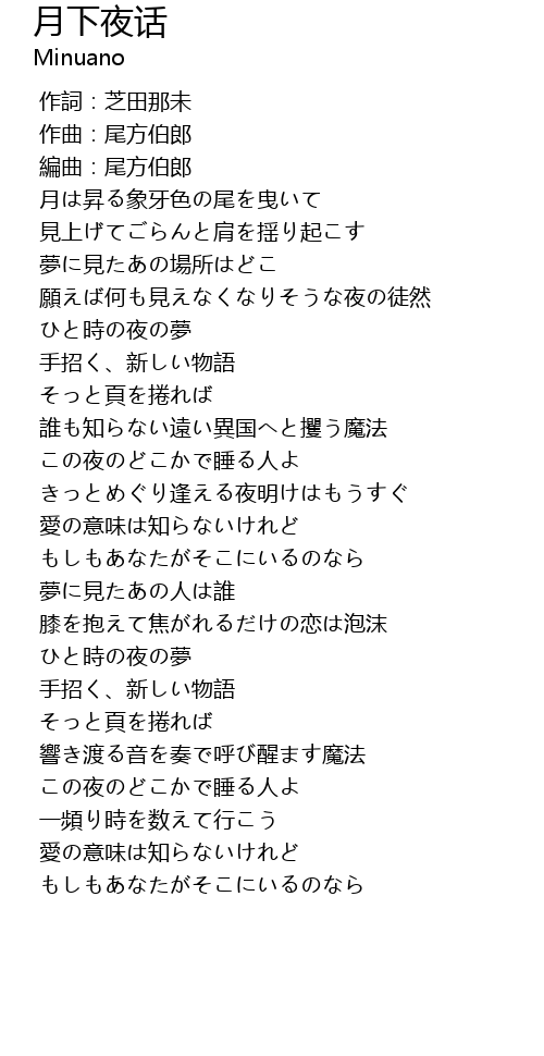 | [03:55.674] | この夜のどこかで睡る人よ |