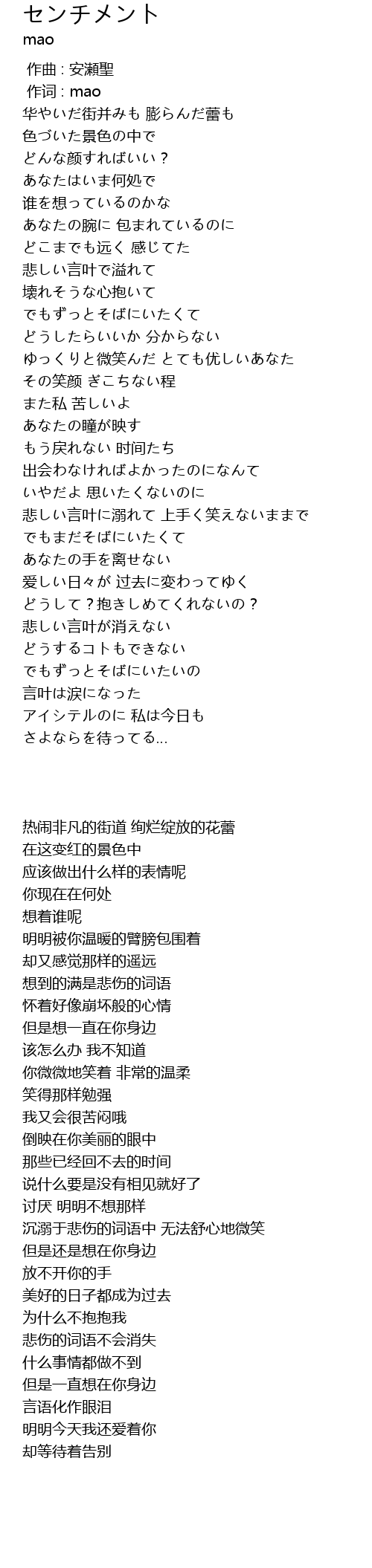 | [03:36.432] | どうして?抱きしめてくれないの? |