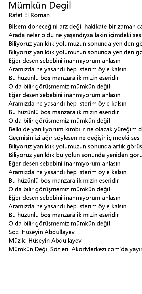 | Mümkün Değil Sözleri, AkorMerkezi.com'da yayınlanmıştır. |