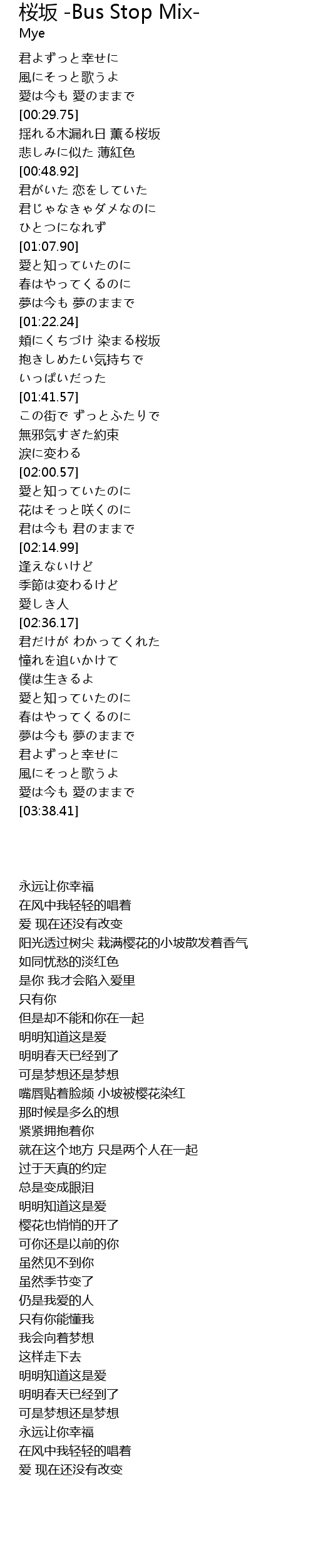 | [00:33.76] | 揺れる木漏れ日 薫る桜坂 |