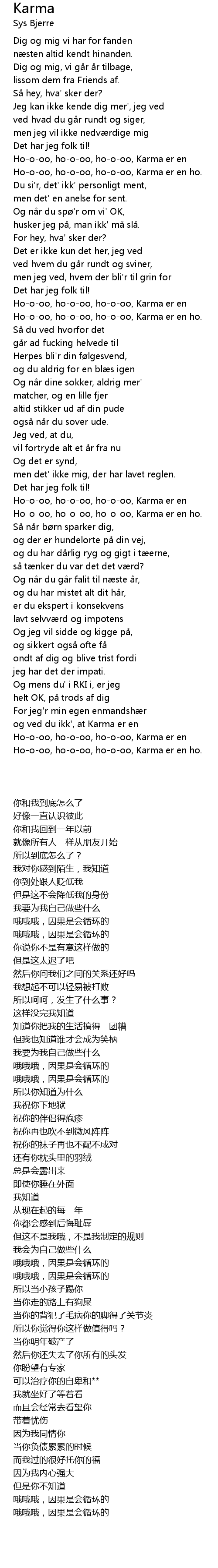 | [00:45.40] | Hoooo, hoooo, hoooo, Karma er en ho. |