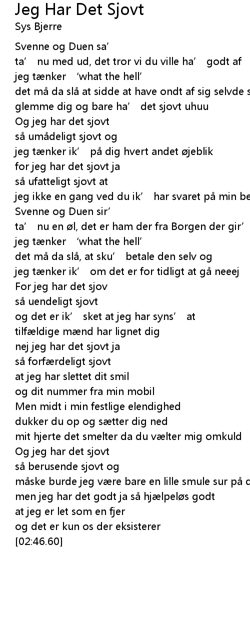 | [02:33.86] | men jeg har det godt ja s hj lpel s godt |