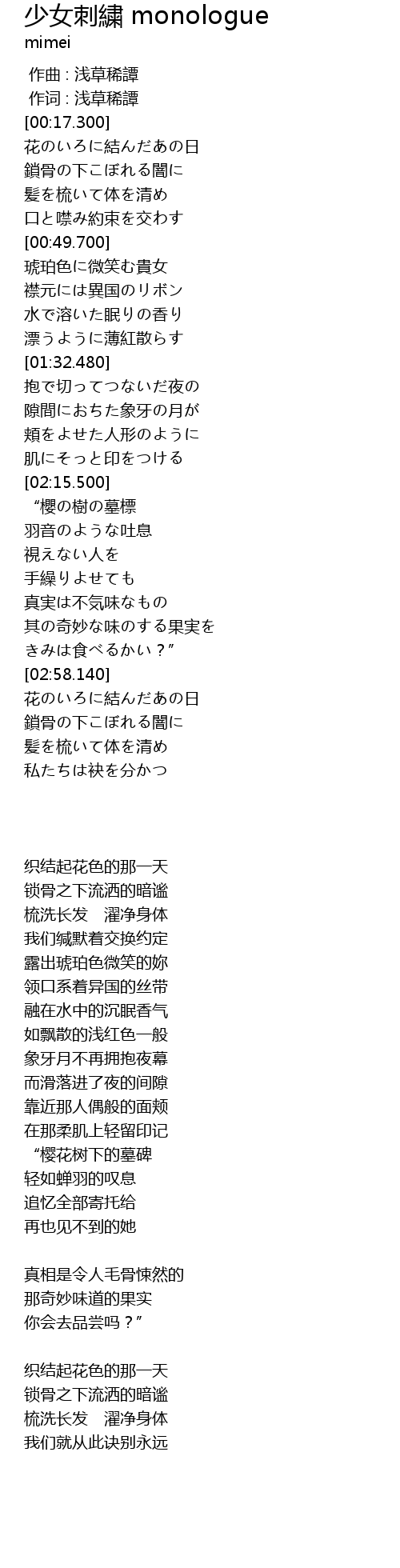 作词 : 浅草稀譚 |
