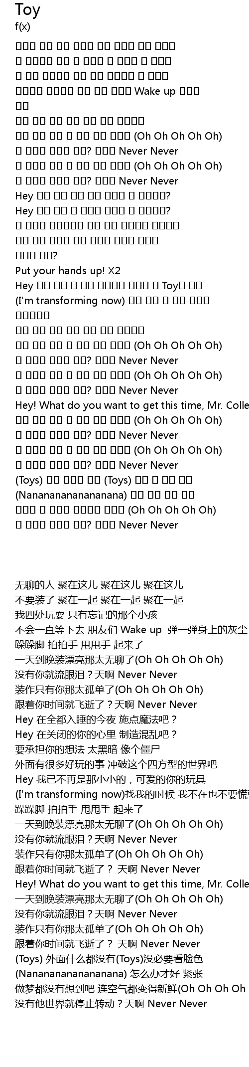 | [01:23.650] | Hey 이제 나는 더 이상 조그맣고 귀여운 네 Toy가 아냐 |
